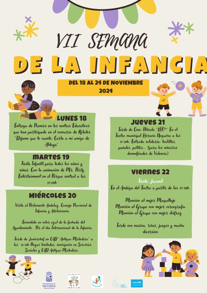 Ya se conoce la programación que conforma la VII Semana dedicada a la Infancia que, organizada por el Ayuntamiento, a través de la Delegación de los Servicios Sociales Comunitarios (área de Infancia), se celebrará del 18 al 22 del mes en curso en el marco del Día Mundial de la Infancia, que tiene lugar cada 20 de Noviembre en el que se conmemoran los Derechos del Niño y de la Niña.