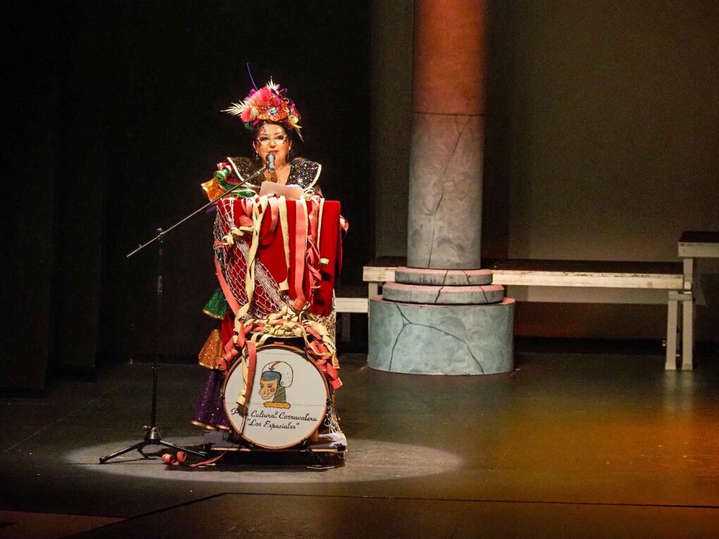 Fue un pregón lleno de color, música y bailes, aspectos fundamentales del Carnaval de Calle con el que Bella López, quiso resumir y reflejar la verdadera esencia del Carnaval isleño, hecho por y para el pueblo.