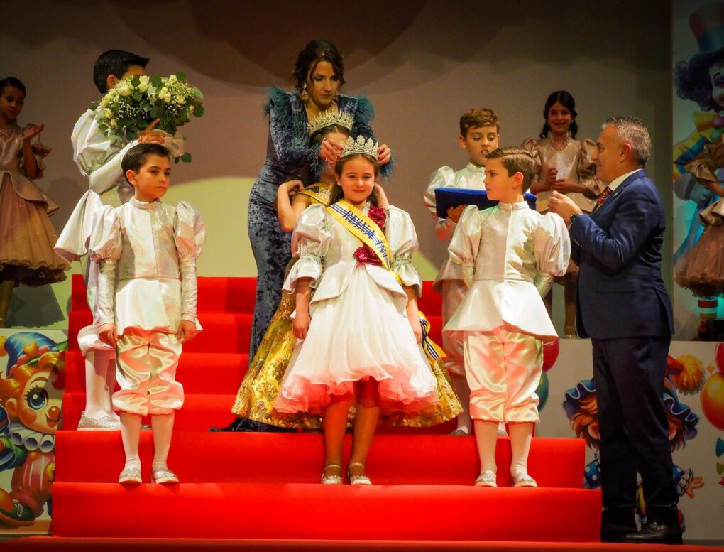 La primera en ser coronada fue la pequeña María del Carmen López Araujo. Era la concejala delegada de Festejos, María del Carmen Beltrán, la encargada de hacerlo, junto a la Reina Infantil saliente, Noa Oria, ante la mirada del alcalde. Antes de que la Reina Infantil colocara las bandas a sus damas, Beltrán despedía a las Cortes Salientes y Reina saliente con un agradecimiento muy especial a todos ellas y felicitaba a las Reinas y Cortes entrantes.
