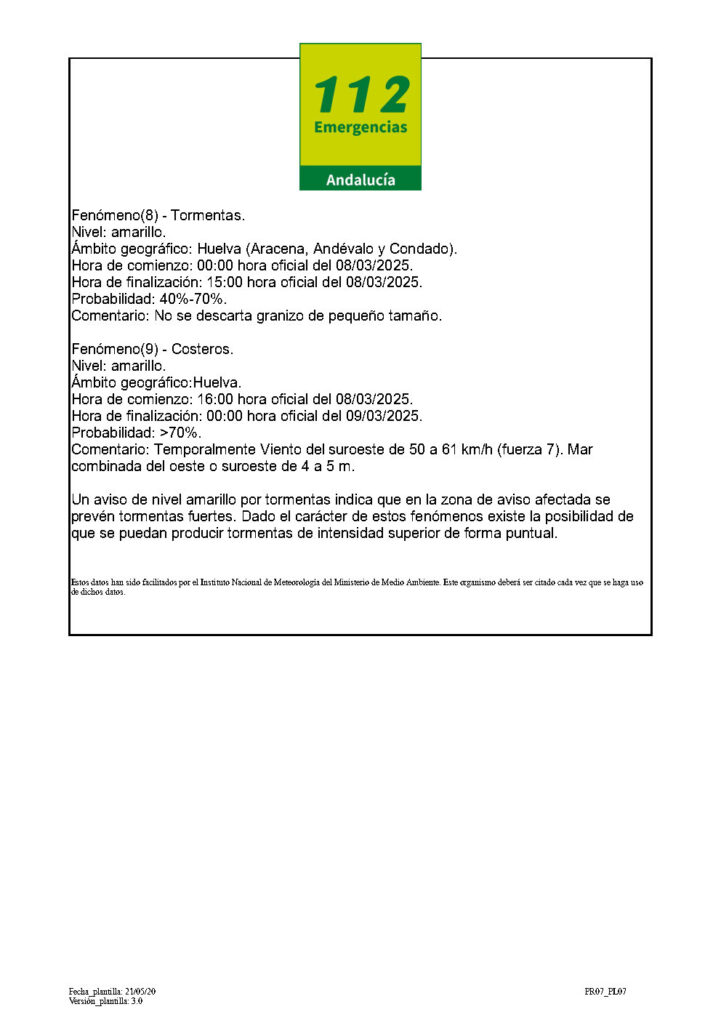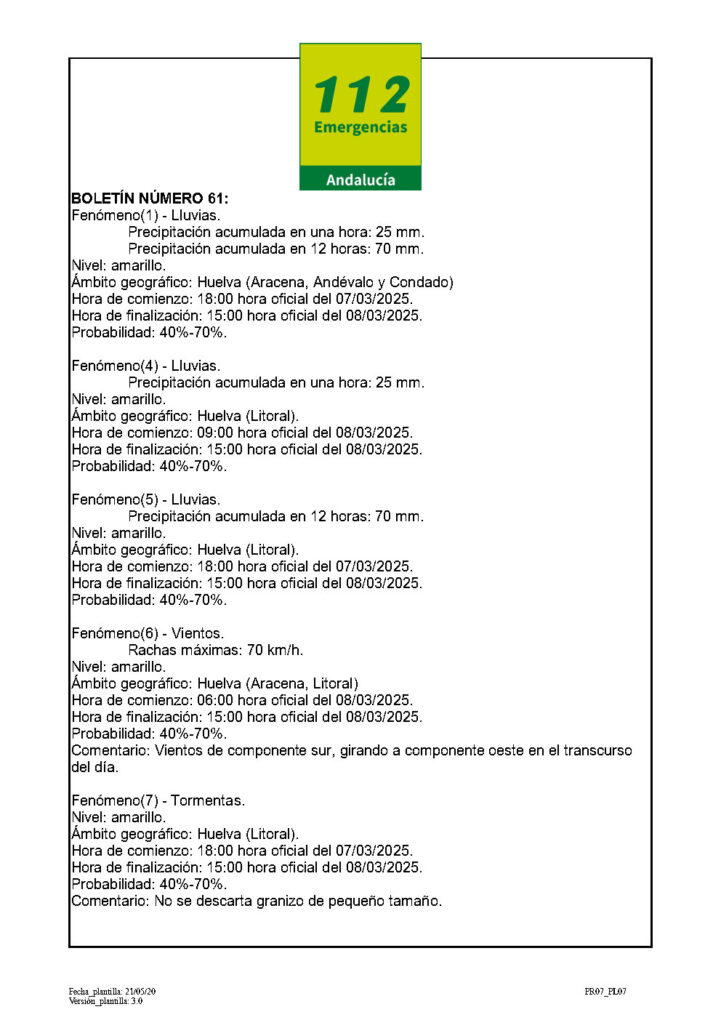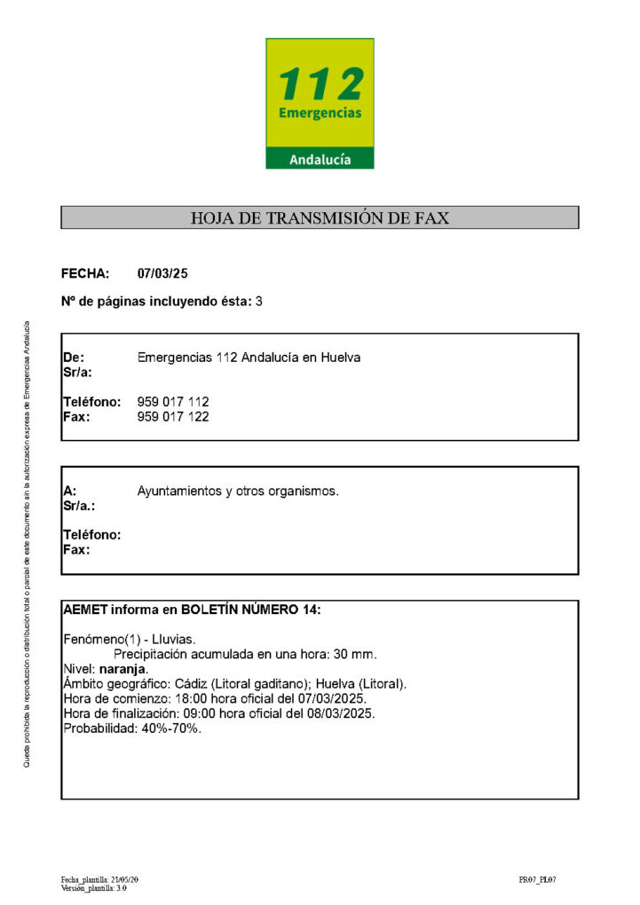 FEMA ALERTA AMARILLA POR LLUVIAS AMPLIACION ZONAS PARA DIA 7
