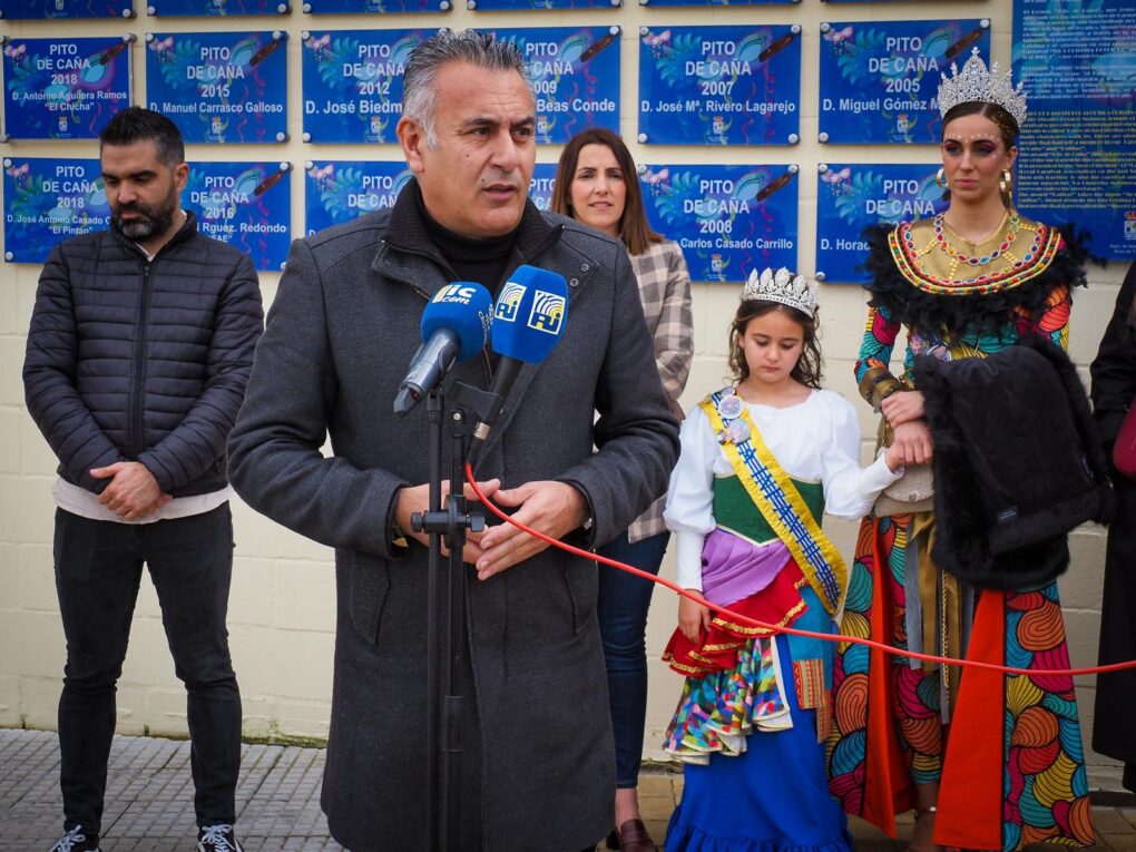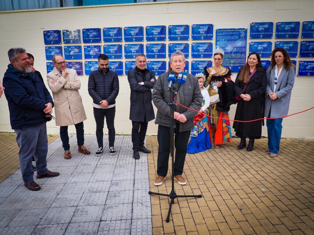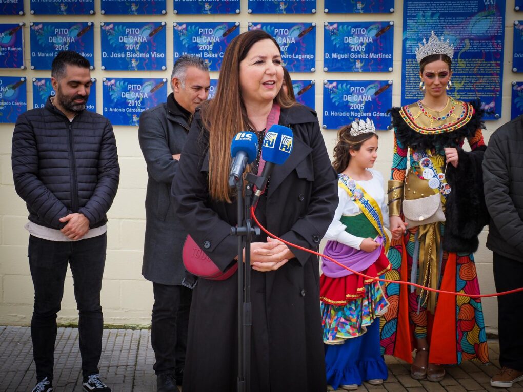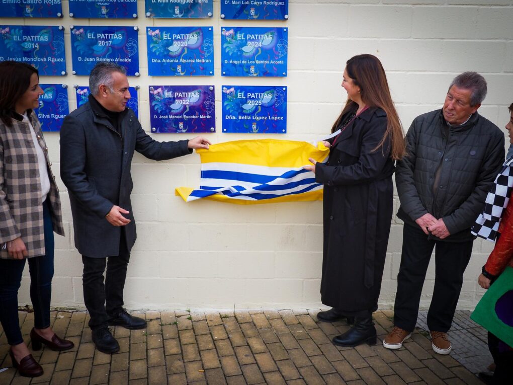 Casi finalizando el Carnaval y con la fiesta ya trasladada a las Peñas, a mediodía se descubrieron dos nuevas placas conmemorativas en el lateral del Teatro Municipal «Horacio Noguera». Estas placas rinden homenaje al carnavalero Juan Ramos Martín, «Cano de la Punta», galardonado con el «Pito de Caña», y Bella López López, premio Manuel Fragoso“El Patitas” este Carnaval de 2025.