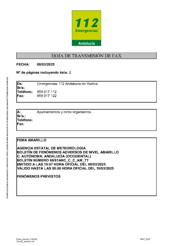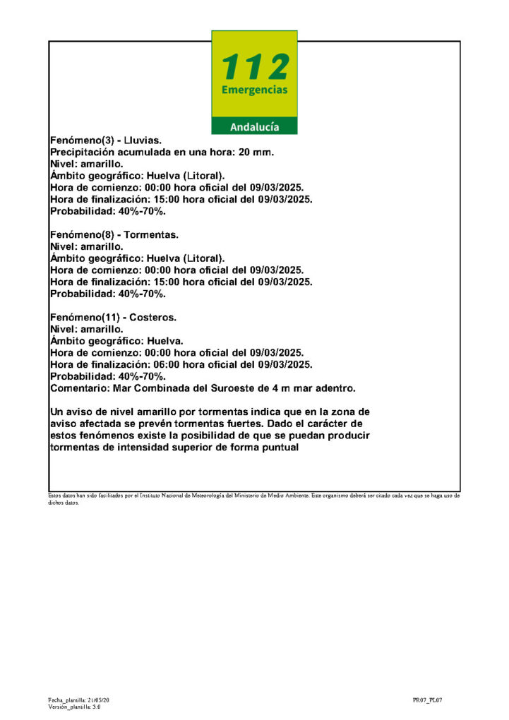 FEMA AMARILLO POR LLUVIAS Y TORMENTAS EL 09-03-2025