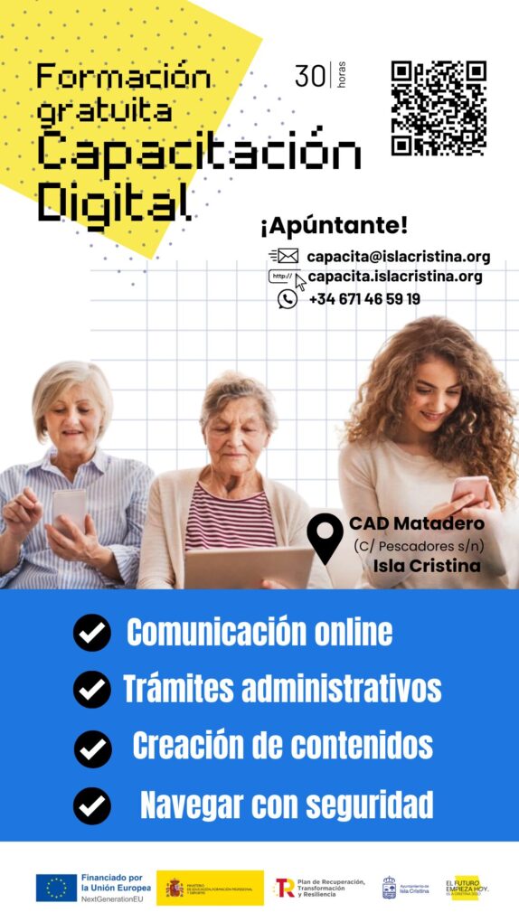 Tras una primera edición en 2024, la puesta en marcha de este programa consolida a Isla Cristina a nivel estatal como parte de la Red de Centros de Capacitación Digital, una iniciativa financiada por el Ministerio de Educación, Formación Profesional y Deportes y por la Unión Europea-NextGenerationEU, en el marco del Plan de Recuperación, Transformación y Resiliencia.