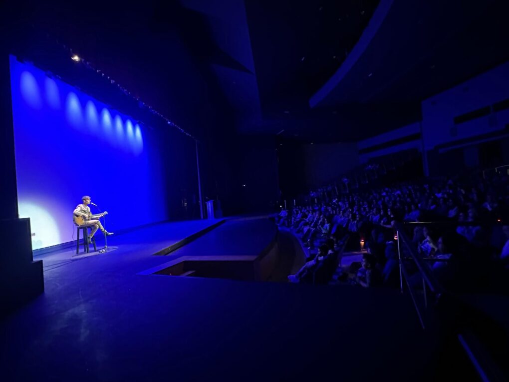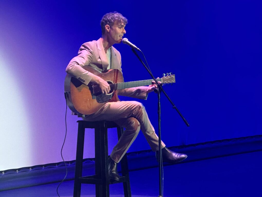 Una vez finalizada su intervención, seguida muy atentamente por los presentes, y tras la actuación del Aula de Teatro Musical del del Liceo de Moguer y del cantautor Féliz López, que interpretó el tema central de la película «Bromas pesadas.»