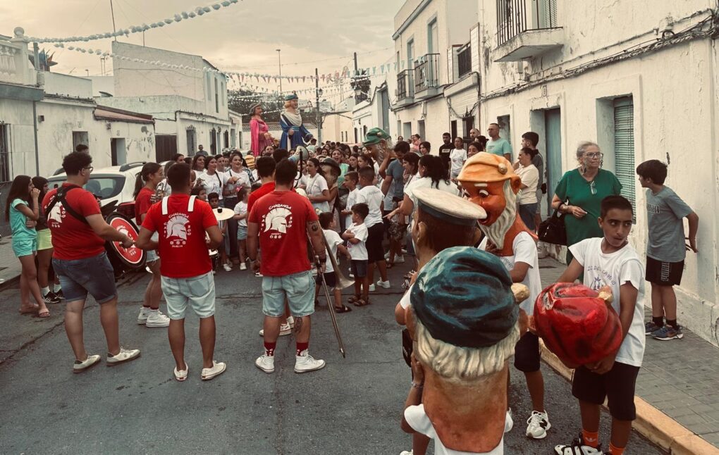 Cientos de personas se dieron cita ayer en la salida del desfile de gigantes y cabezudos que recorrieron las calles de la Barriada de Pozo del Camino, cuya gestión comparten los municipios de Isla Cristina y Ayamonte, anunciando que las fiestas en honor a su Patrona, María Auxiliadora estaban a punto de comenzar con el encendido del alumbrado.