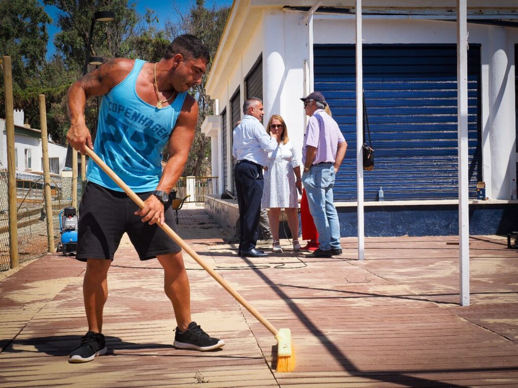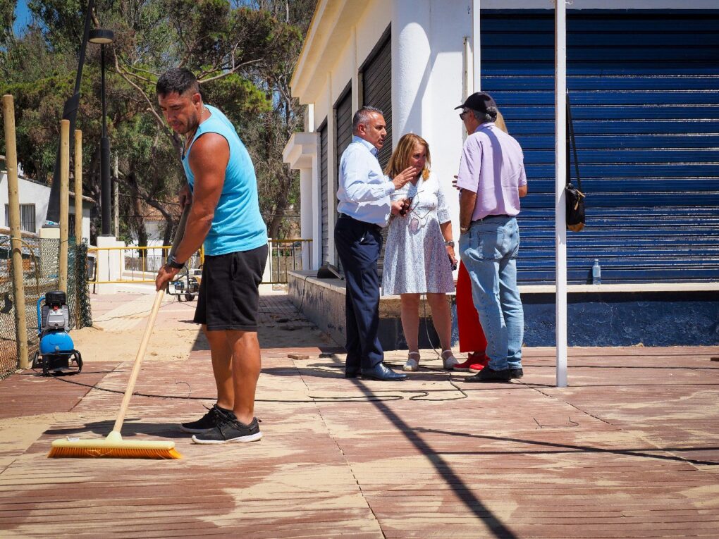 Acompañados por la teniente de alcalde y concejala de Turismo y Playas, Isabel López, pudieron constatar que los trabajos están a punto de finalizar y que la playa se encuentra en excelentes condiciones para recibir a todos este verano.