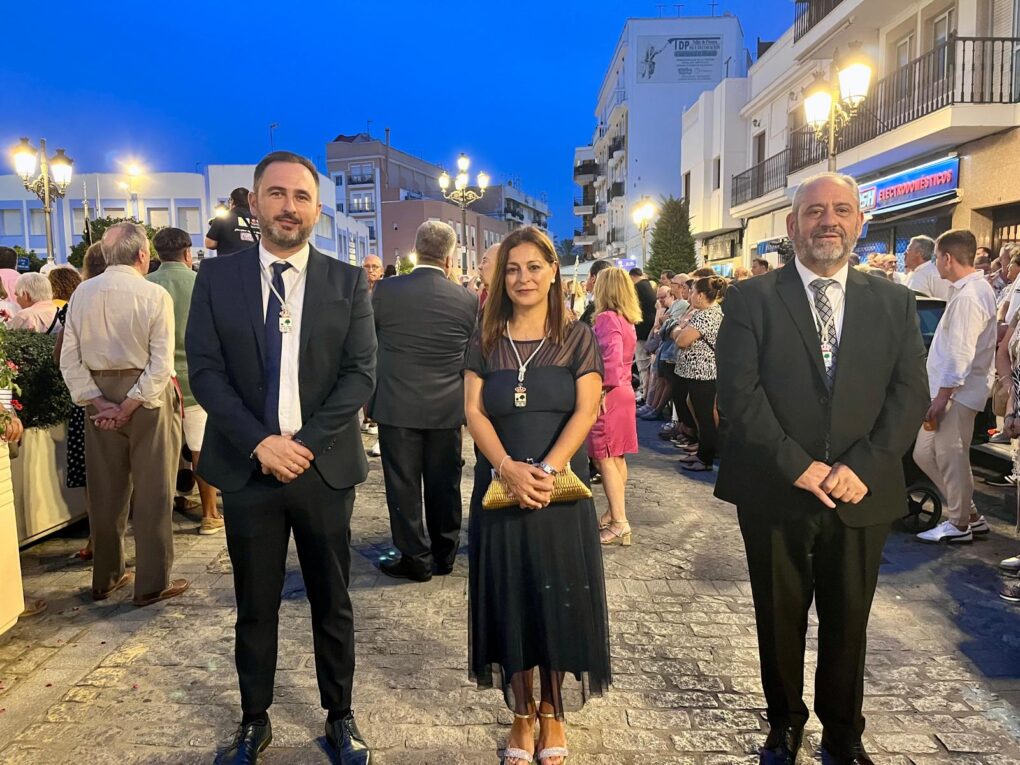 En representación del Ayuntamiento, una amplia comitiva institucional acompañó la procesión, encabezada por el alcalde en Funciones, Francisco Zamudio. También estuvieron presentes miembros del Consejo de Hermandades y Cofradías, presidido por Javier Castro, así como representantes de distintas hermandades, cofradías, grupos religiosos y asociaciones parroquiales de la localidad. Destacaron además la presencia del Rvdo. Párroco, Gregorio Koza, del sacerdote isleño Juan José Travé, así como del hermano mayor de la Hermandad, Juan García, acompañado por los miembros de su Junta de Gobierno, que participaron activamente en este solemne acto.