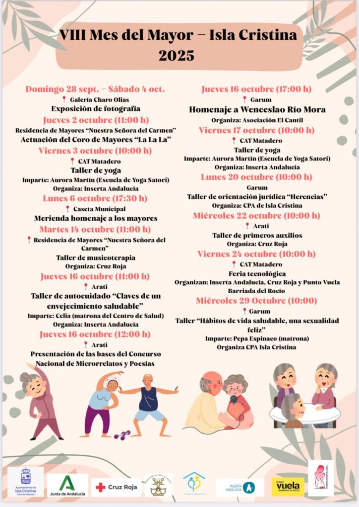 El Área de Mayores de la Delegación Municipal de los Servicios Sociales Comunitarios del Ayuntamiento de Isla Cristina ha presentado oficialmente el cartel y la programación del VIII Mes de las Personas Mayores, una iniciativa ya consolidada en el calendario local y que este año comenzó el 28 de septiembre.