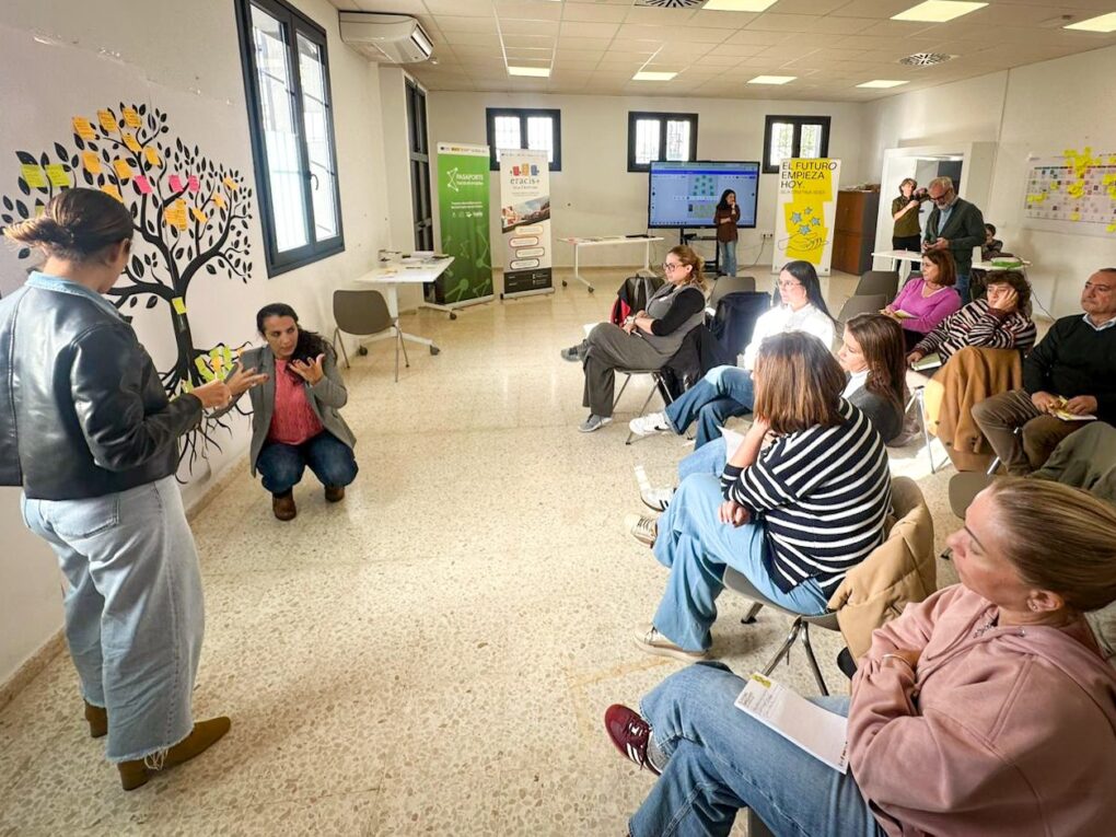El equipo formador de la UHU, integrado por las docentes Manuela Fernández, Elena Ferri, Rocío Muñoz, Ana Vallejo y Teresa Gómez, de la Facultad de Trabajo Social, condujo una sesión dinámica y participativa estructurada en torno a dos grandes bloques de trabajo.