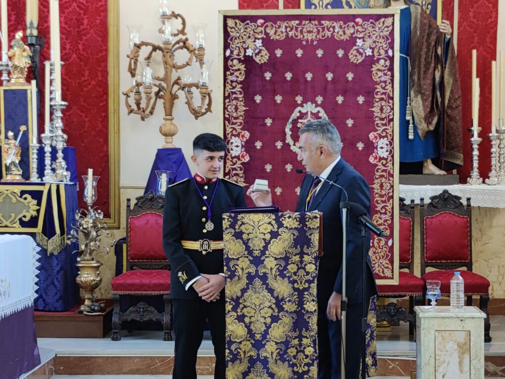 Al finalizar el acto, el pregonero recibió varios obsequios y recuerdos en reconocimiento a su esfuerzo y dedicación, entre ellos un pin conmemorativo creado especialmente para el pregonero juvenil, así como diferentes detalles por parte de las hermandades presentes.