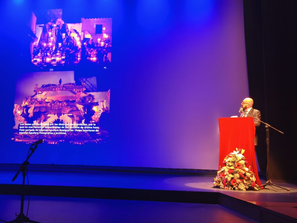 El Teatro Horacio Noguera acogió en la noche de ayer uno de los actos cuaresmales más destacados de la Hermandad de la Vera-Cruz y Cofradía del Santísimo Cristo del Amor, Nuestra Señora de la Piedad y Santo Entierro de Nuestro Señor Jesucristo: la presentación oficial del cartel anunciador y del tradicional Programa de Mano 2026, una publicación histórica que se edita de forma ininterrumpida desde 1984 y que constituye la más antigua de sus características en la localidad.
