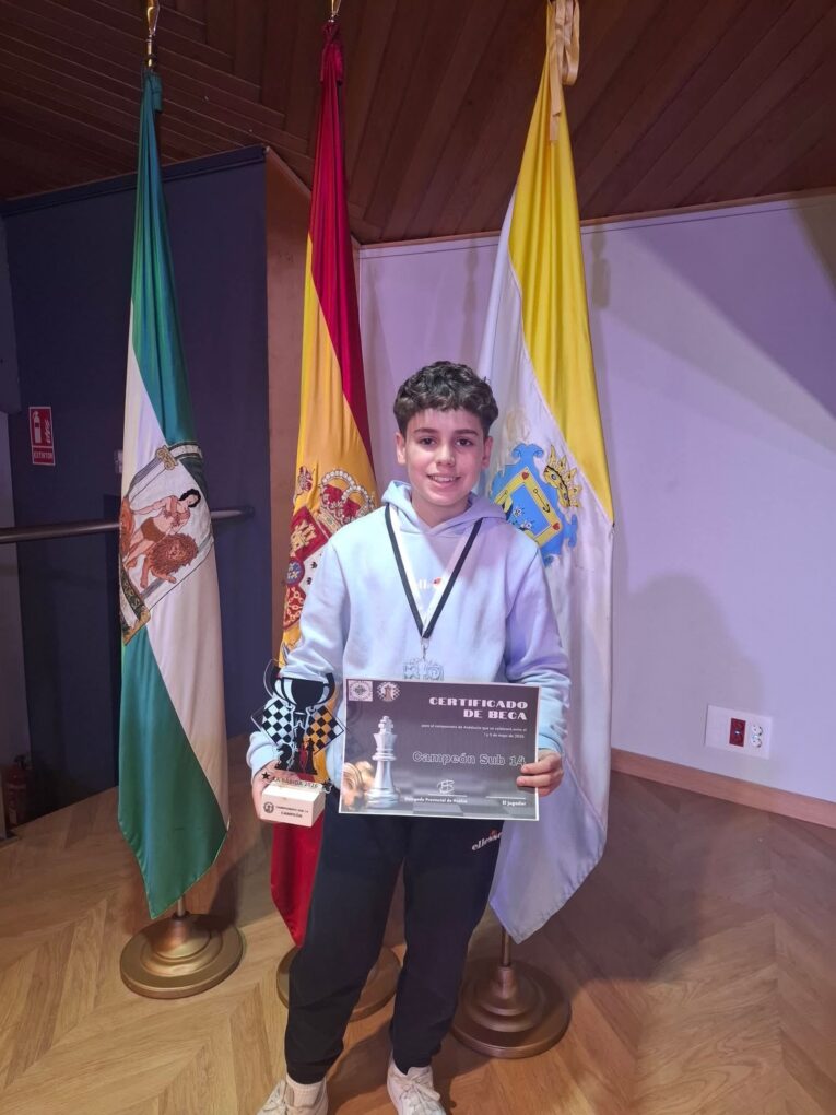 Asimismo, el joven ajedrecista Álvaro Escobar se ha proclamado campeón provincial de Huelva en categoría sub-14, un logro que pone de manifiesto su talento, constancia y proyección en el mundo del ajedrez.