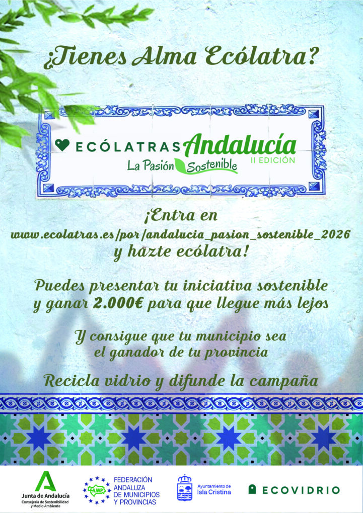 80 municipios de Andalucía, entre ellos, Isla Cristina, están llamados a participar en el movimiento Ecólatras a través de la campaña “La Pasión Sostenible”.